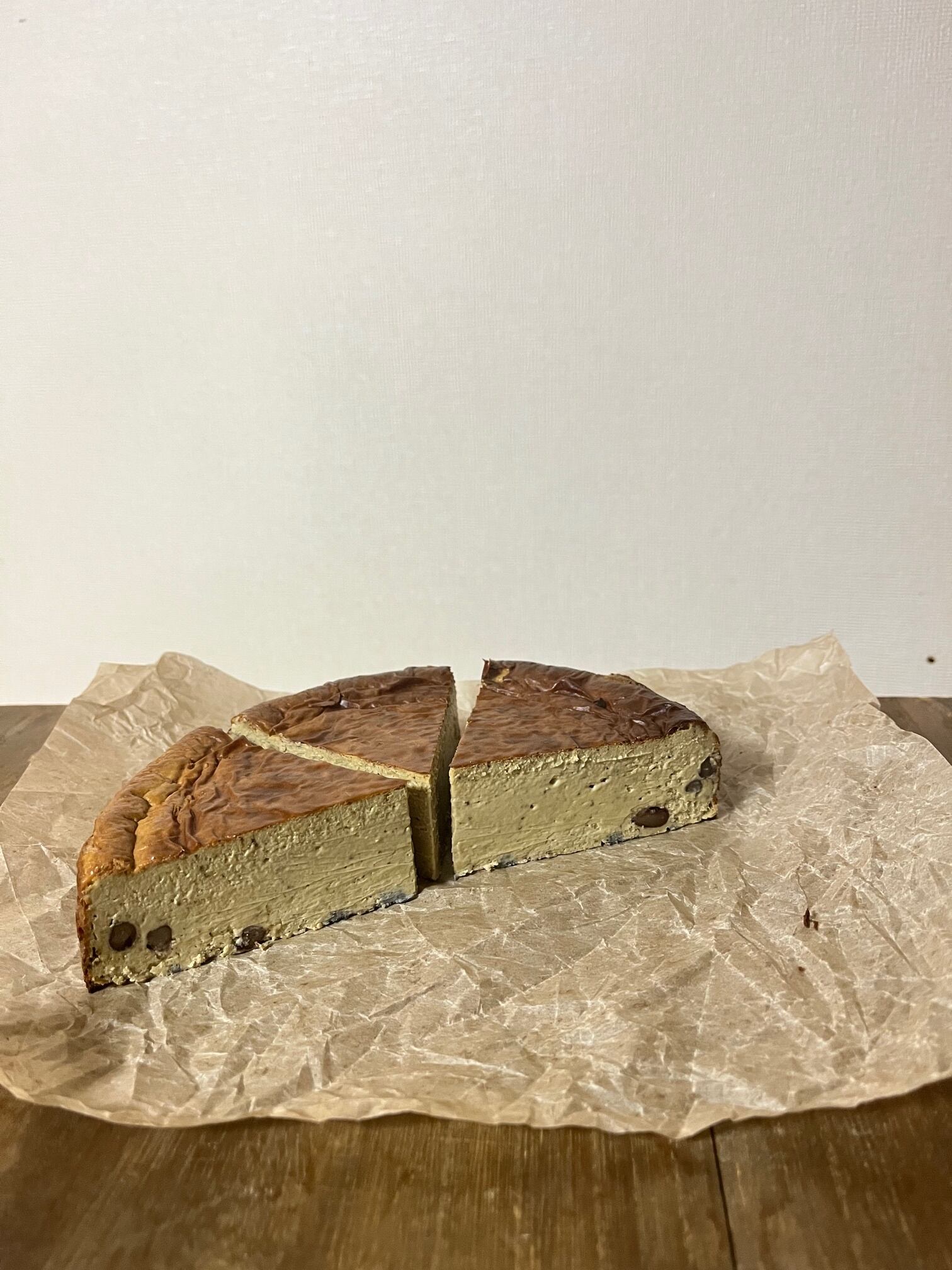 香ばしいほうじ茶と甘さ控えめなあずきが織りなす、まろやかな風味のバスクチーズケーキです。口の中でとろけるようなクリーミーなチーズに、ほうじ茶のほのかな香りが広がり、ほうじ茶好きにはたまらない一品となっています。