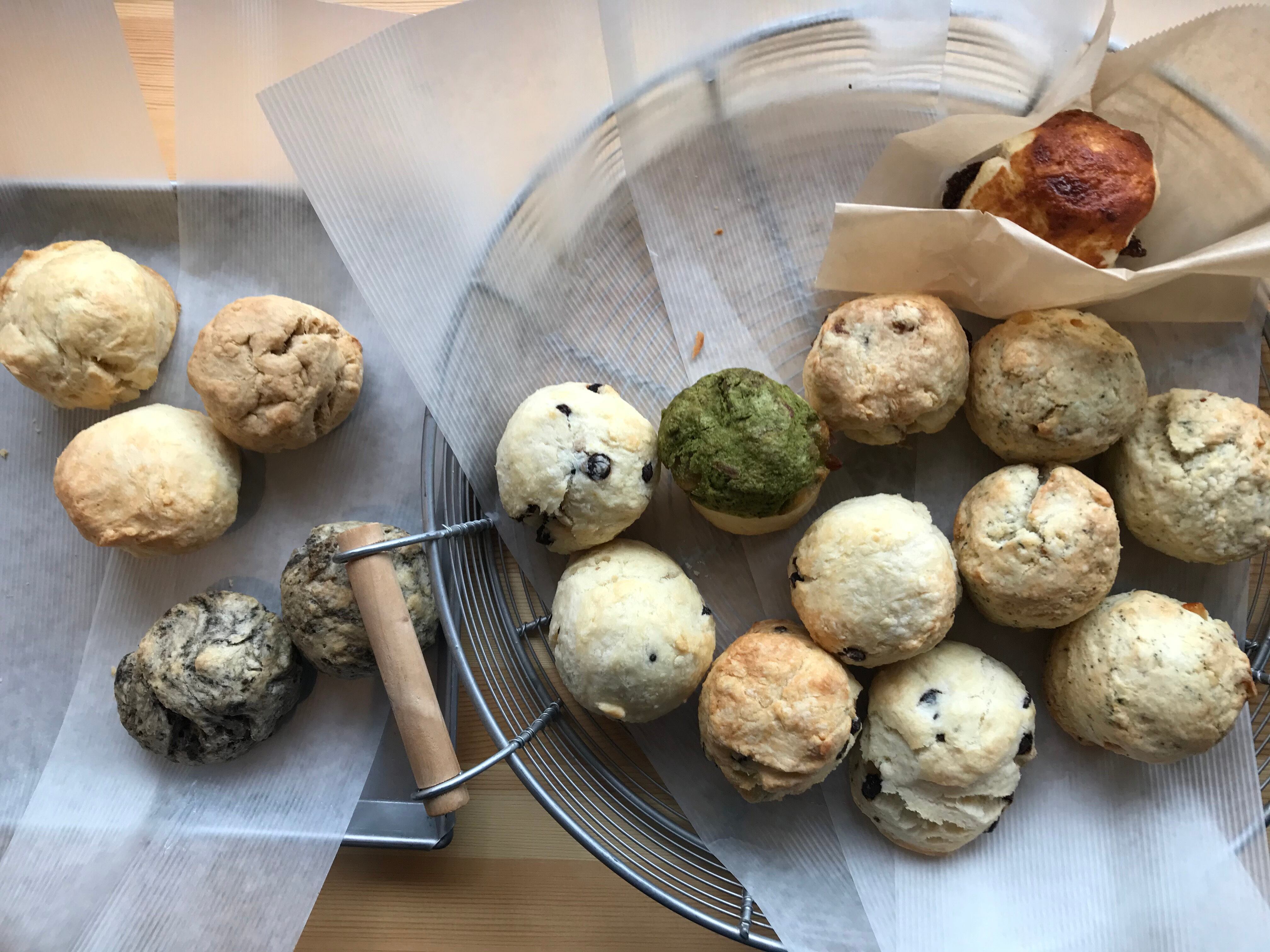 小麦粉、バター、豆乳、砂糖、ベーキングパウダー